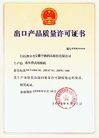 中德公司獲得出口產品質量許可證書