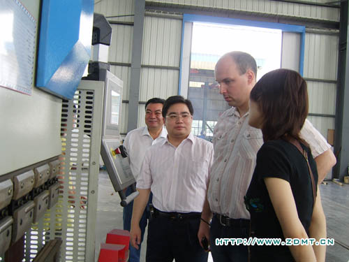在中德公司領(lǐng)導(dǎo)的陪同下,尼爾森先生來(lái)到了我們的車(chē)間。尼爾森先生尤其關(guān)注數(shù)控類(lèi)機(jī)床,對(duì)數(shù)控機(jī)床成品都一一細(xì)細(xì)查看。在正在生產(chǎn)中的大型數(shù)控雙機(jī)聯(lián)動(dòng)折彎?rùn)C(jī)前,尼爾森表現(xiàn)出了極大的興趣,認(rèn)真的向負(fù)責(zé)人了解機(jī)器的情況。在大型裝配車(chē)間,尼爾森一行對(duì)中德車(chē)間的管理布局及環(huán)境表示了贊揚(yáng),雖然天氣很熱,干凈整潔的車(chē)間環(huán)境讓他們輕松地進(jìn)行參觀。另外,負(fù)責(zé)人還向他們介紹了產(chǎn)品設(shè)計(jì)方面的一些小細(xì)節(jié)如夾塊、T型槽等等,這些細(xì)節(jié)體現(xiàn)出了中德產(chǎn)品使客戶在使用產(chǎn)品過(guò)程中將會(huì)得到極大的便利。