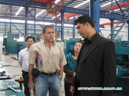 稍事休息,Atila Deniz先生和Mr.Tunc便帶著迫切的心情參觀了中德的各個車間。從裝備車間到大件車間,至電焊車間再到金工車間??腿藢χ械庐a品表現(xiàn)出濃厚的興趣,提出的問題也是相當專業(yè)、細致。比如,機床使用材料的鋼號,數(shù)控系統(tǒng)的工作效率等等,無不體現(xiàn)出一個機床消費成熟國的高標準。