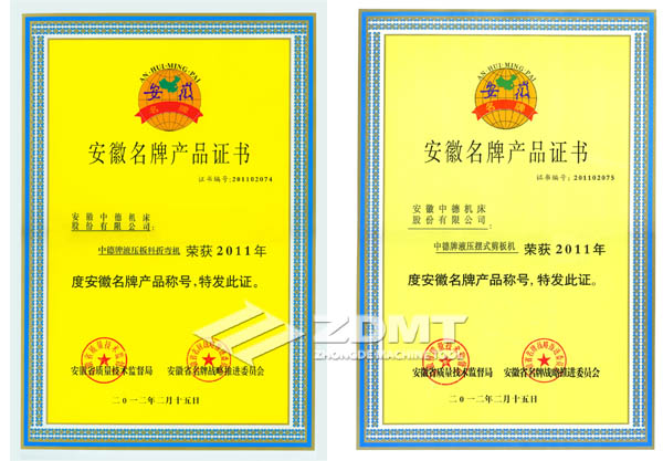 2012年3月22日,馬鞍山市召開(kāi)了全市質(zhì)量技術(shù)監(jiān)督工作會(huì)議,會(huì)議對(duì)2011年獲得質(zhì)監(jiān)部門(mén)相關(guān)榮譽(yù)的企業(yè)與個(gè)人進(jìn)行了表彰,我公司中德牌液壓擺式剪板機(jī)和中德牌液壓板料折彎?rùn)C(jī)兩個(gè)產(chǎn)品分別通過(guò)了2011年“安徽名牌”的復(fù)審。